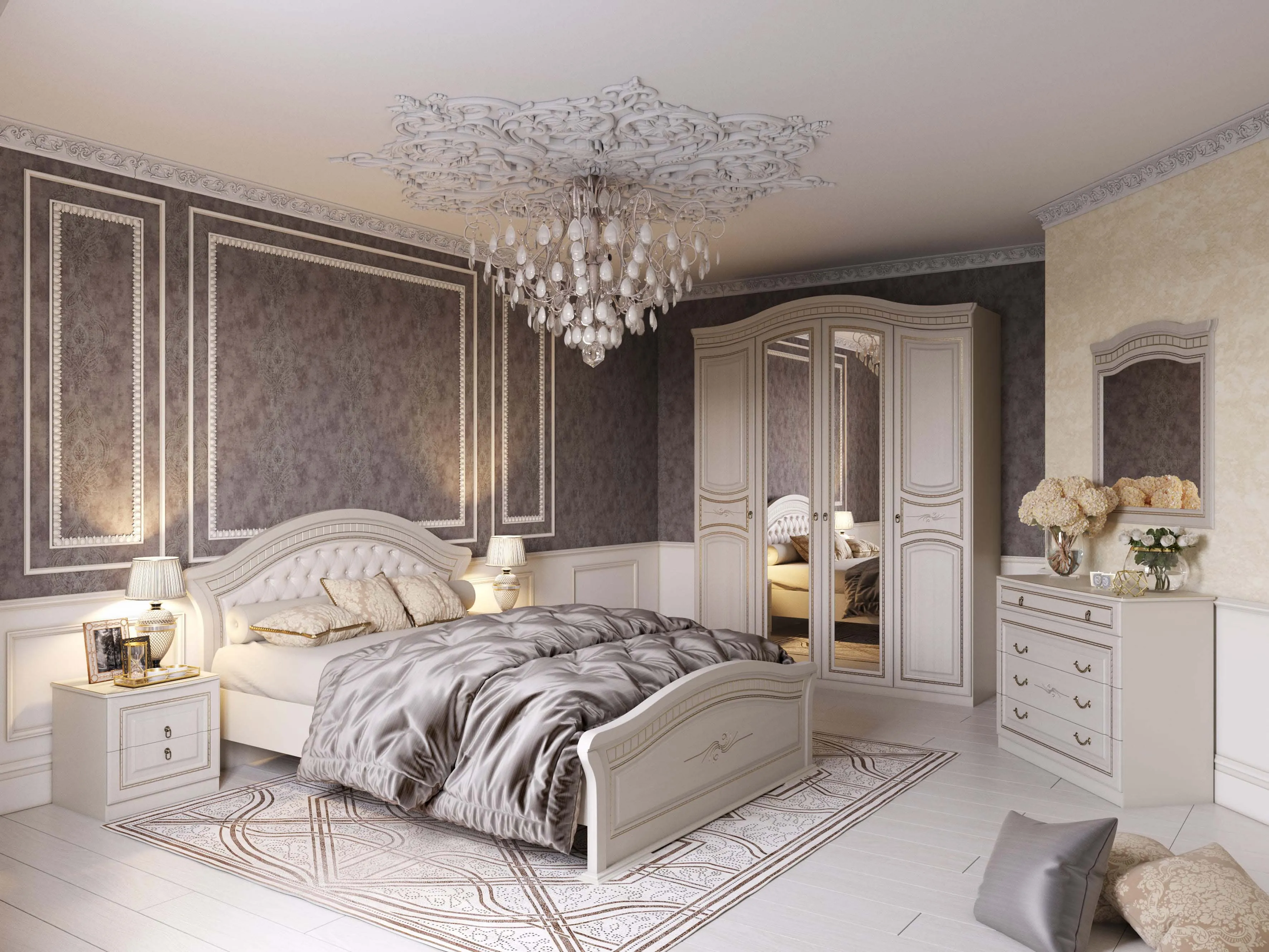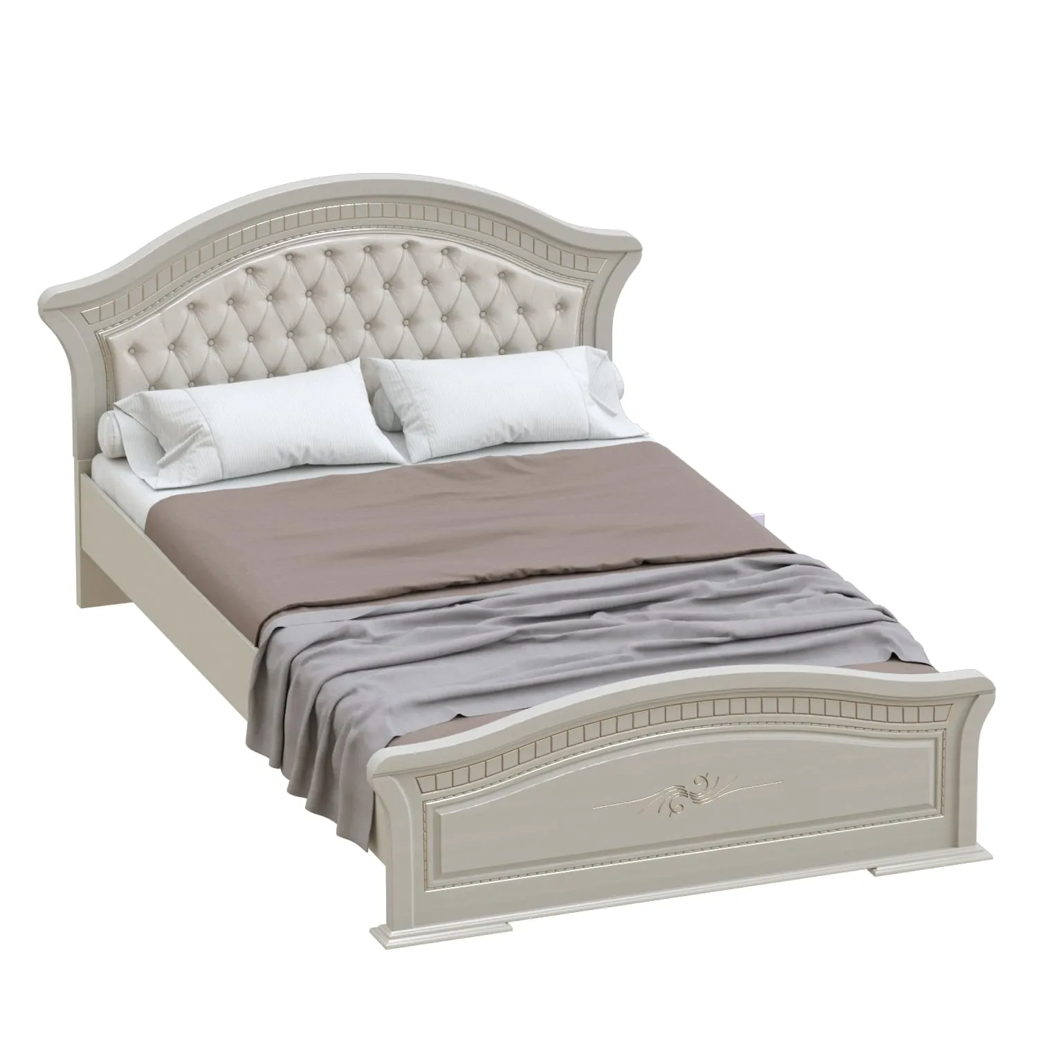 Фасад декорирован элегантной фрезеровкой с эффектом патины. Кровать в цветовом решении "Ясень жемчужный / Ваниль" придаст интерьеру воздушность, ощущение роскоши, нежности и легкости, наполнив спальную комнату светом.