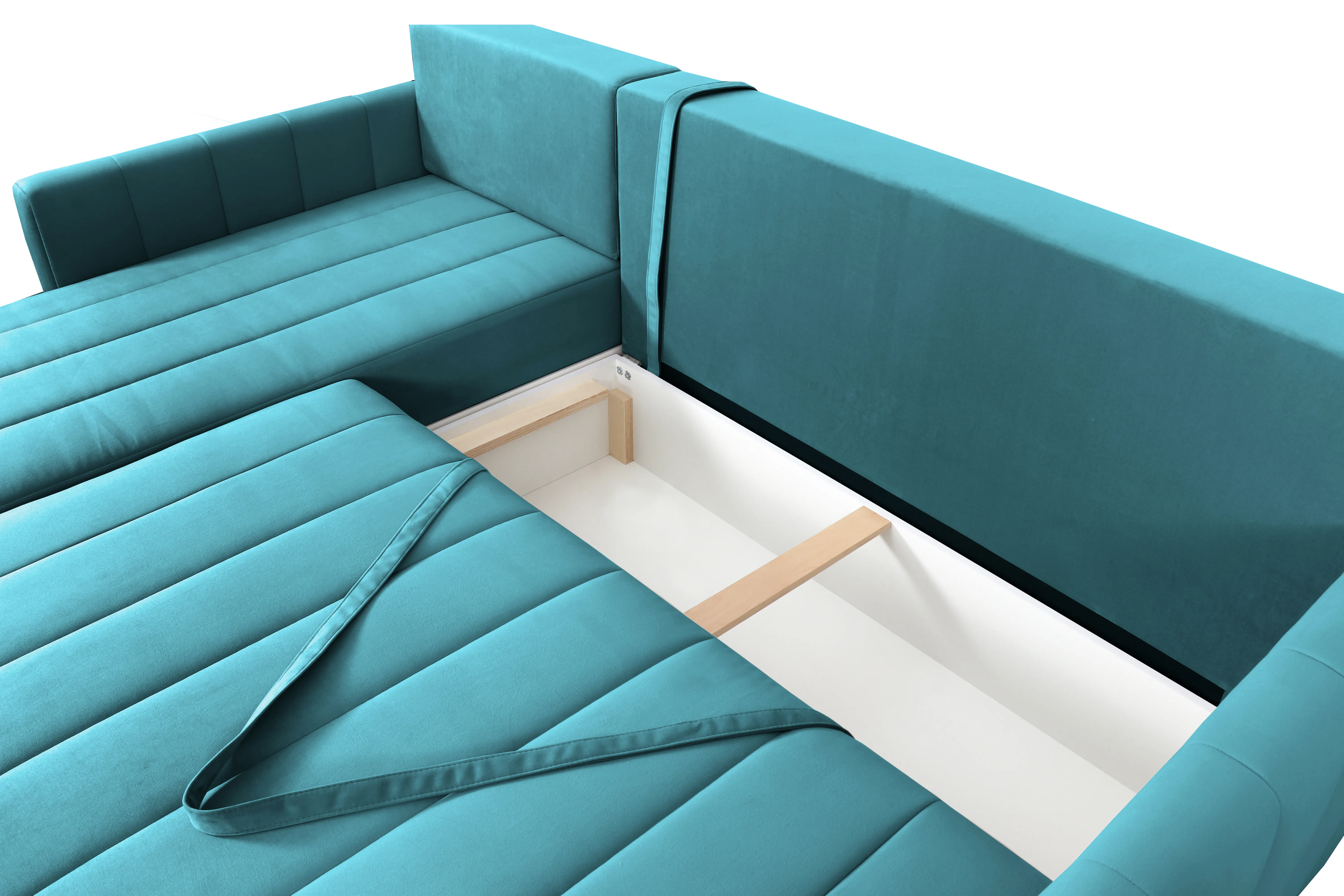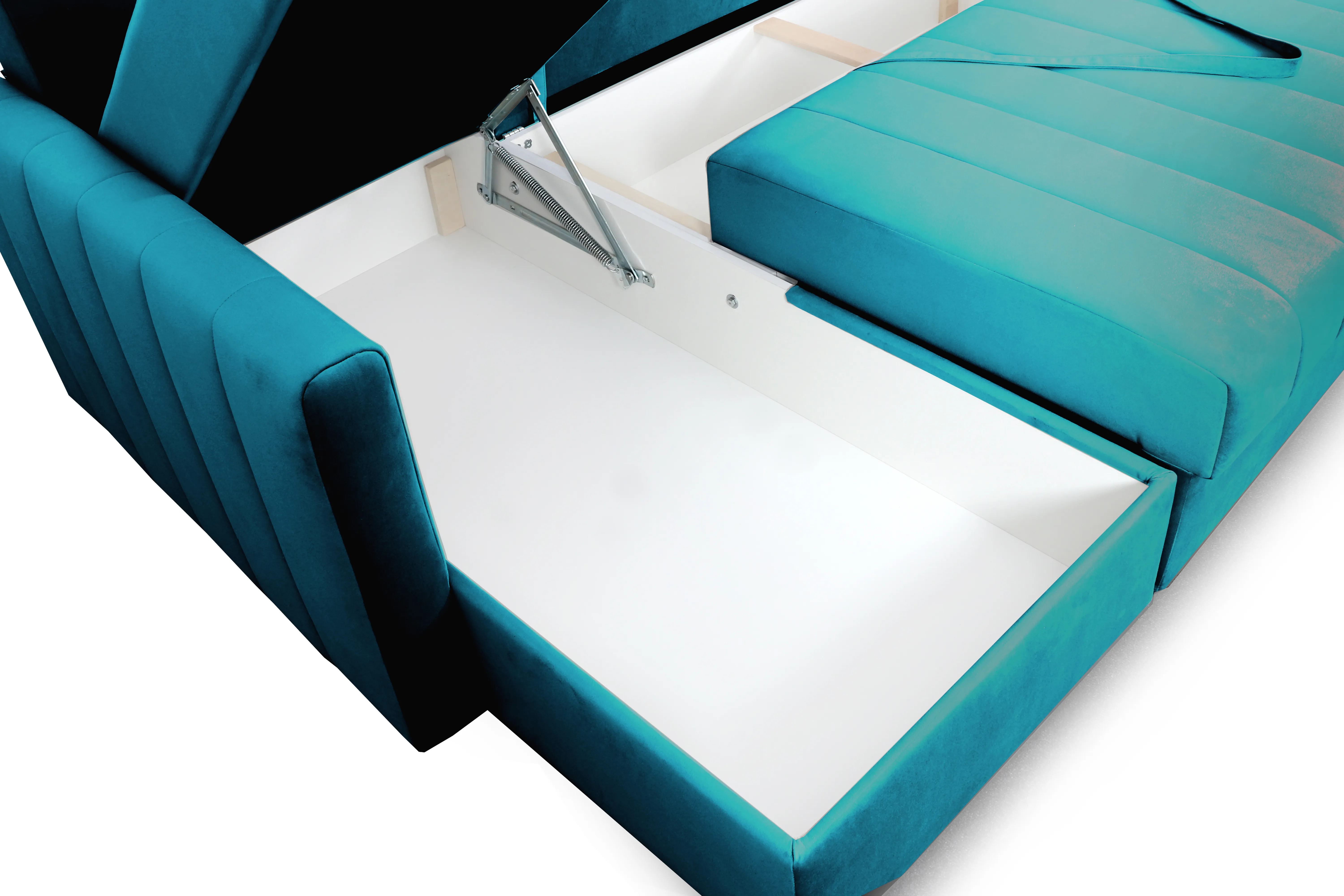 Диван удачно зонирует пространство и дополняет необходимым функционалом. В основании спального места блок независимых пружин для комфортного сна. Вместительный ящик для хранения постельных принадлежностей.